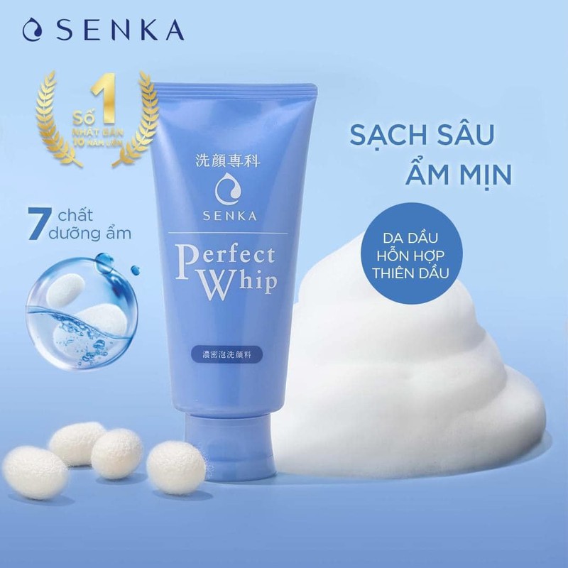 Sữa rửa mặt Senka Perfect Whip 120g chứa chiết xuất tinh chất tơ tằm thiên nhiên và gấp đôi Hyaluronic acid hợp chất gồm 2 loại Hyaluronic acid giúp da ẩm mượt, mềm mại và rạng ngời. Công nghệ Aqua in Pool độc quyền từ Shiseido làm sạch da chọn lọc lấy đi bụi bẩn, bã nhờn nhưng vẫn giúp giữ lại lớp màng dưỡng ẩm tự nhiên cho da mềm mịn sau khi rửa mặt.