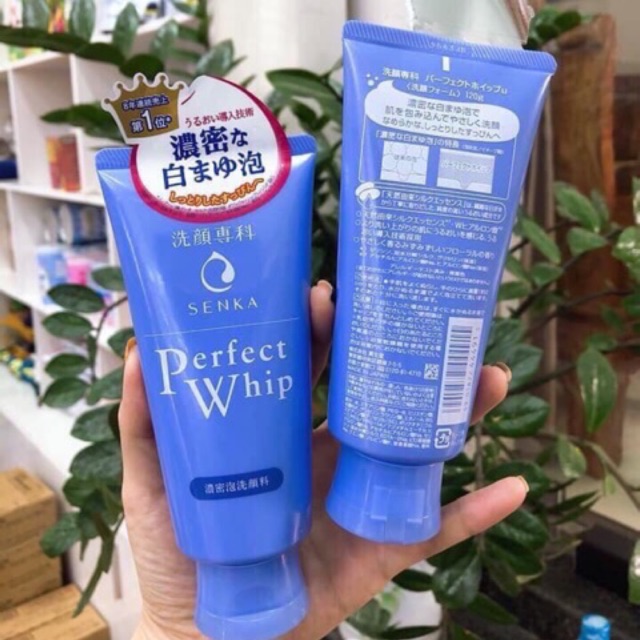 Sữa rửa mặt Senka Perfect Whip dạng tuýp màu xanh đơn giản và nhẹ nhàng, dạng tuýp úp ngược nhỏ gọn, nắp bật tiện lợi và dễ sử dụng.
