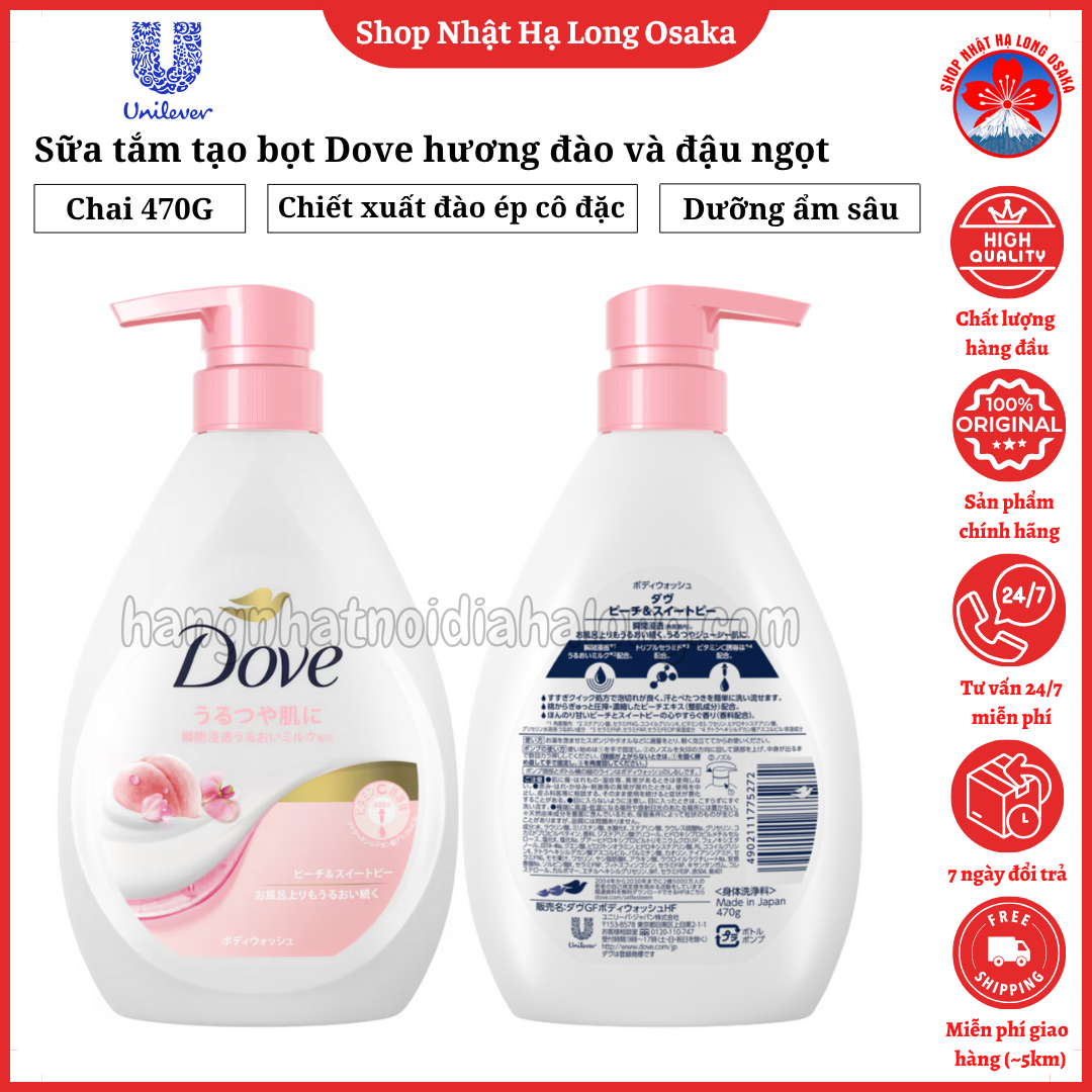 🍑 Sữa Tắm Tạo Bọt Dove – Hương Đào & Đậu Ngọt