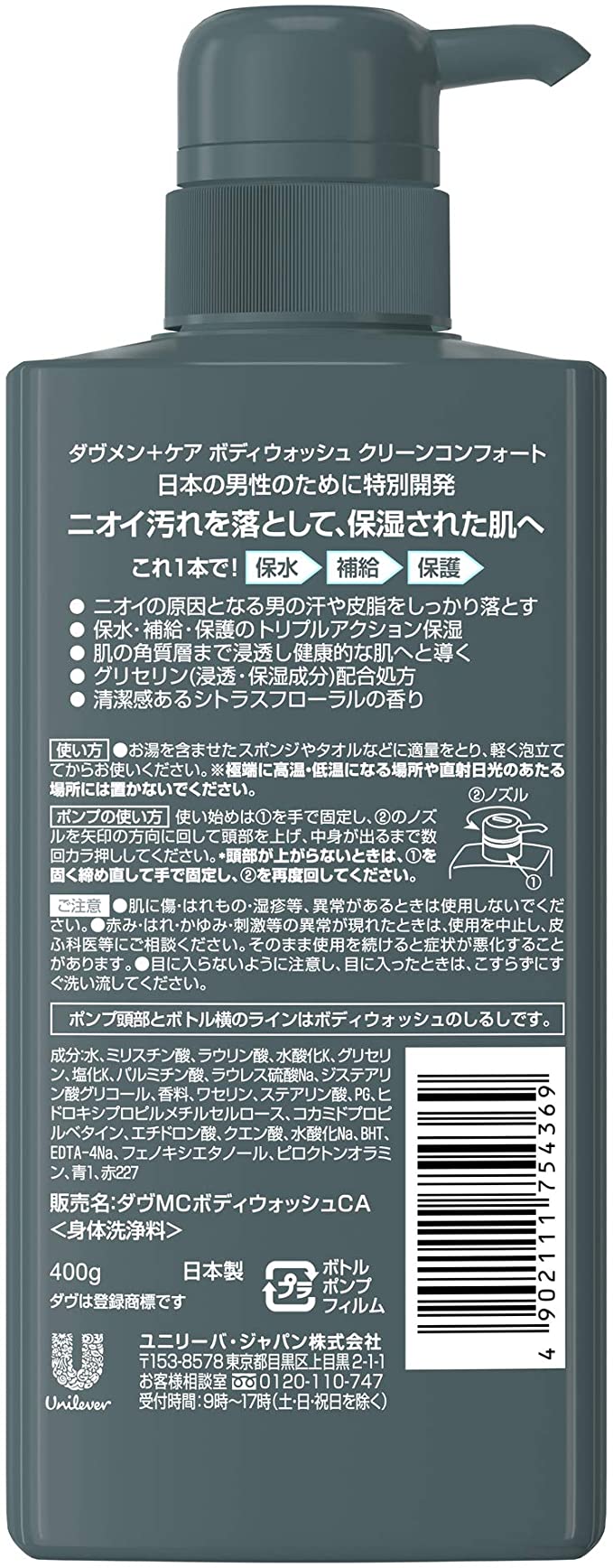 - Sữa tắm dành riêng cho nam giới chứa ba thành phần dưỡng ẩm glycerin, axit palmitic và vaseline giúp loại bỏ mồ hôi và bã nhờn gây mùi khó chịu, đồng thời thẩm thấu sâu vào da giúp làm sạch da và dưỡng ẩm cho da.
