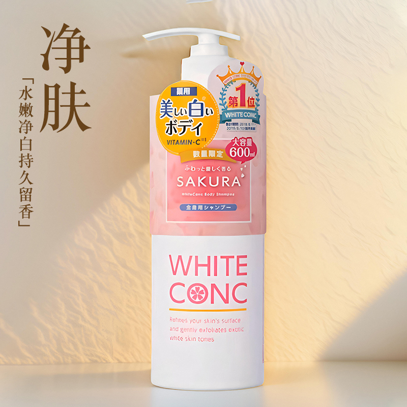 White Conc CII Sakura là sữa tắm dưỡng trắng đến từ Nhật Bản, giúp làm sạch da dịu nhẹ và hỗ trợ cải thiện sắc tố da nhờ dẫn xuất vitamin C, chiết xuất dâu tằm, uva-ursi và cam thảo. Sản phẩm loại bỏ tế bào chết chứa melanin – nguyên nhân chính khiến da sạm màu – mà không gây khô da hay kích ứng.