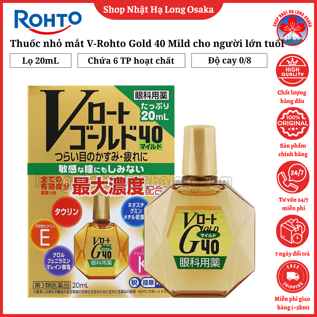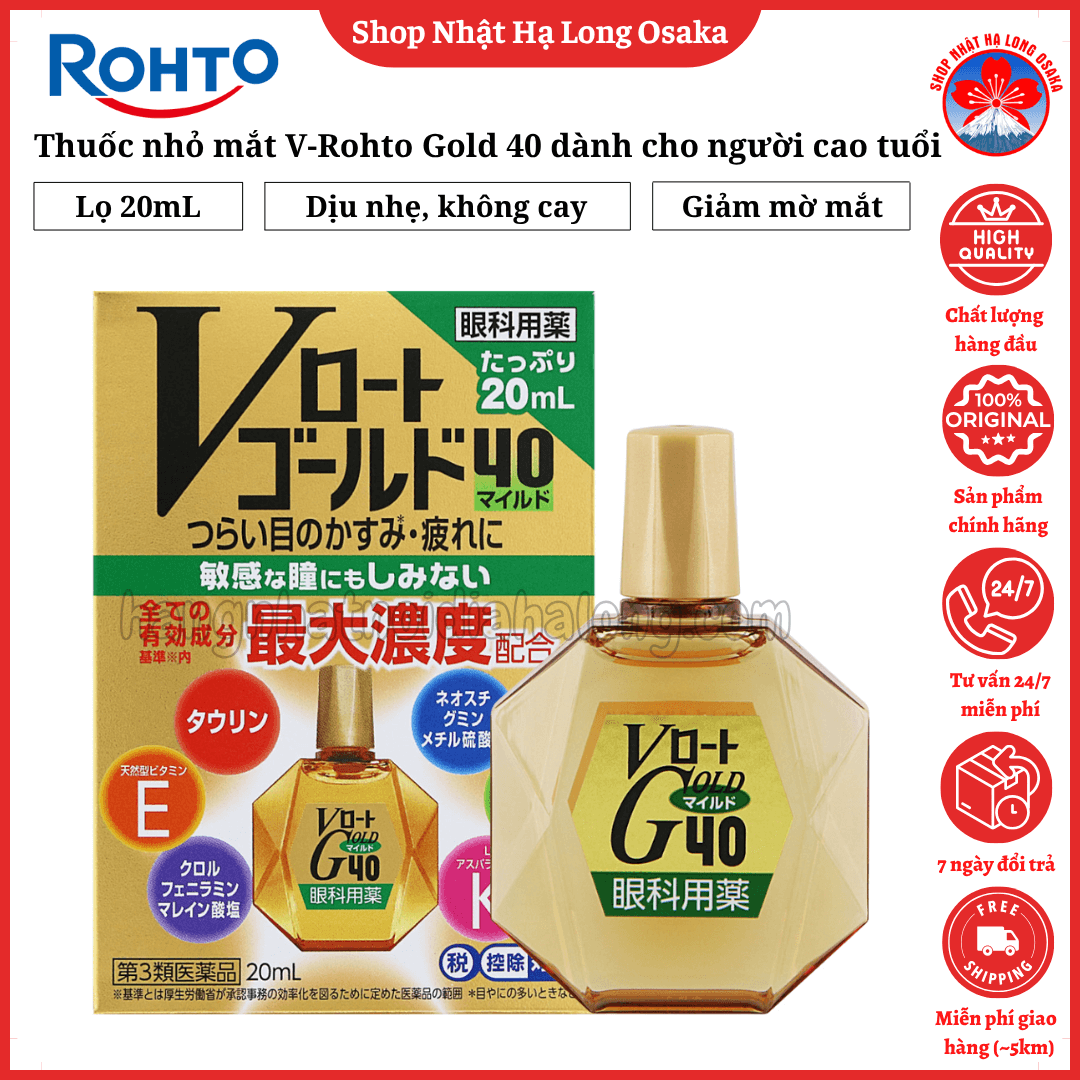 A1: Sản phẩm được thiết kế đặc biệt dành cho người trung niên và người cao tuổi – những đối tượng thường gặp các vấn đề về thị lực như mỏi mắt, mờ mắt, khô rát hoặc khó chịu do tuổi tác. Ngoài ra, V-Rohto Gold 40 cũng phù hợp với người thường xuyên làm việc với máy tính, điện thoại hoặc học tập trong thời gian dài khiến mắt bị căng thẳng và mệt mỏi.