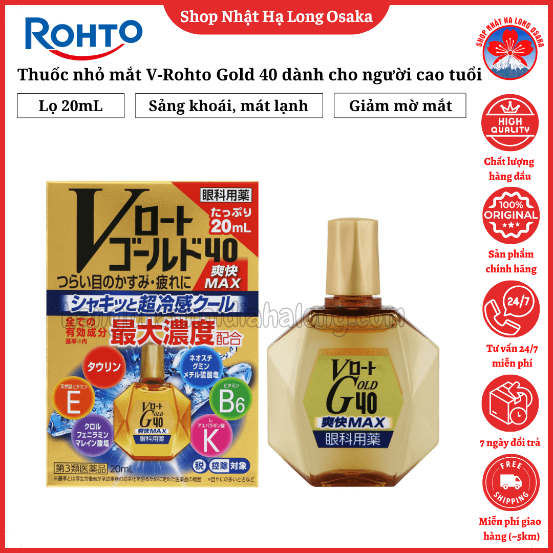 A1: Sản phẩm được thiết kế đặc biệt dành cho người trung niên và người cao tuổi – những đối tượng thường gặp các vấn đề về thị lực như mỏi mắt, mờ mắt, khô rát hoặc khó chịu do tuổi tác. Ngoài ra, V-Rohto Gold 40 cũng phù hợp với người thường xuyên làm việc với máy tính, điện thoại hoặc học tập trong thời gian dài khiến mắt bị căng thẳng và mệt mỏi.
