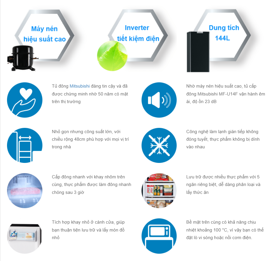 Tủ cấp đông nội địa Nhật Bản MITSUBISHI MF-U14F-B