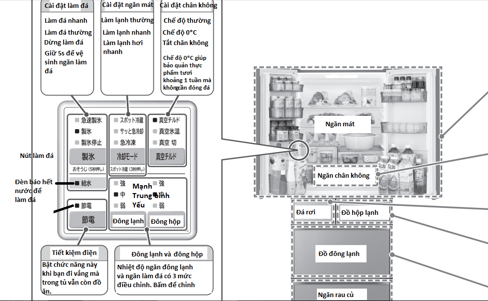 – 6 cánh 5 ngăn: thiết kế này không chỉ thể hiện một chiếc tủ cao cấp mà đó còn là tinh hoa của người Nhật. Với 5 ngăn riêng biệt, mỗi ngăn có 1 tác dụng khác nhau cho bạn không gian thoải mái để chứa đồ. 5 ngăn cũng là cách để thực phẩm không bị nhiễm mùi hoặc nhiễm khuẩn chéo với nhau. 5 ngăn giúp bạn tiết kiệm điện khi cần lấy đồ ngăn nào thì mở cửa ngăn đó.
