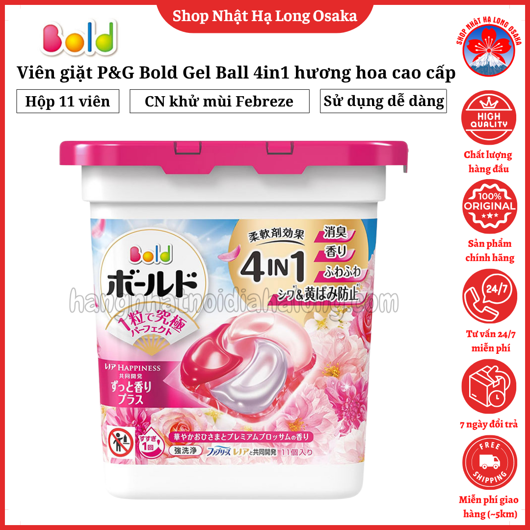 Viên giặt P&G Bold Gel Ball 4in1 là lựa chọn giặt giũ thông minh cho gia đình hiện đại. Với công nghệ giặt tẩy tiên tiến đến từ Nhật Bản, mỗi viên tích hợp 4 tính năng vượt trội: giặt sạch sâu – mềm vải – chống nhăn – khử mùi, giúp quần áo luôn sạch thơm và mềm mại suốt ngày dài. Sản phẩm sử dụng dễ dàng, không cần bóc vỏ, phù hợp cho cả máy giặt cửa trước lẫn cửa trên. Hương hoa dịu nhẹ cao cấp, với sự kết hợp hương thơm sang trọng từ Premium Blossom & Glamorous Hills mang đến cảm giác thanh thoát, quyến rũ và nhẹ nhàng – giống như khoác lên mình một làn hương nước hoa sành điệu suốt cả ngày. Lý tưởng để giặt đồ mặc hàng ngày, đồ trẻ em hay chăn ga mùa hè.