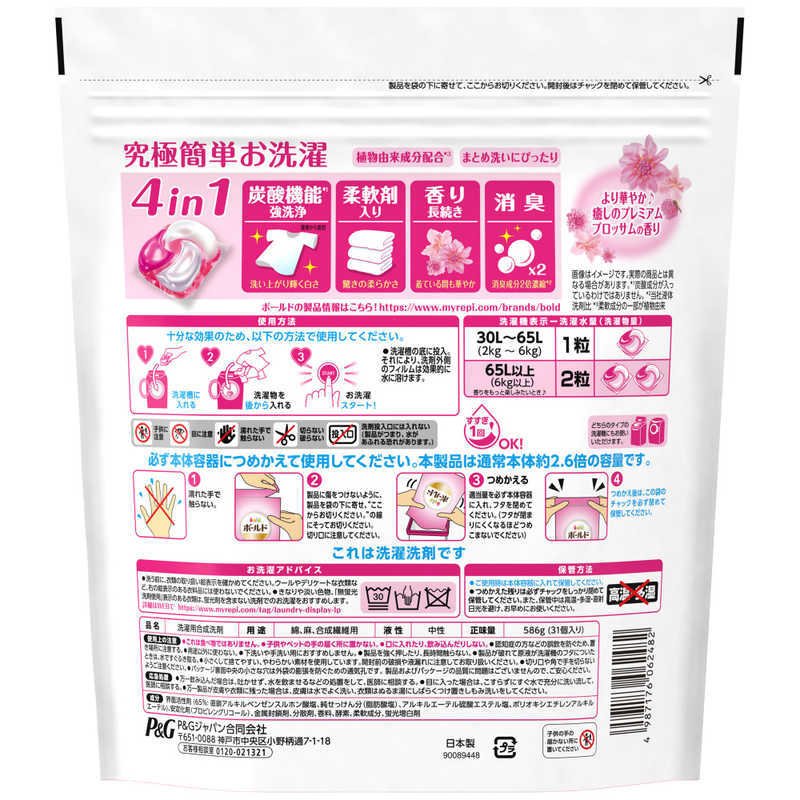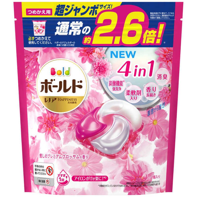 Viên giặt Bold Gel Ball 4in1 thiết kế công nghệ 4D mới, thành phần bóc tách vết bẩn kết hợp cùng chức năng bọt khí li ti len lõi vào từng sợi vải, đánh bật các vết bẩn cứng đầu trên quần áo một cách nhanh chóng hiệu quả, quần áo sạch tinh tươm. Thành phần khử mùi và làm thơm vải, lưu hương dài lâu, cho quần áo luôn thơm mát với mùi hương dịu nhẹ. Cùng thành phần làm mềm vải, làm giảm nhăn, cho việc ủi quần áo nhanh chóng, dễ dàng hơn. Chỉ cần cho viên giặt vào lồng giặt, lớp film tự tan trong nước, bảo vệ đôi tay khỏi tiếp xúc hóa chất.