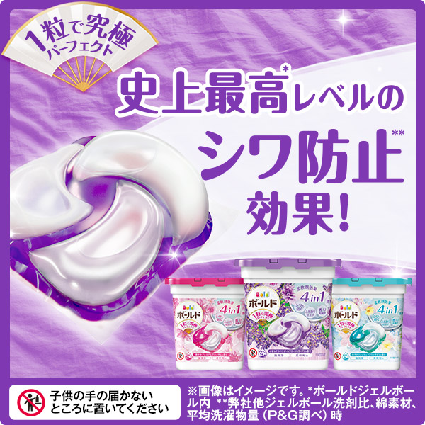 Viên giặt Bold Gel Ball 4in1 thiết kế công nghệ 4D mới, thành phần bóc tách vết bẩn kết hợp cùng chức năng bọt khí li ti len lõi vào từng sợi vải, đánh bật các vết bẩn cứng đầu trên quần áo một cách nhanh chóng hiệu quả, quần áo sạch tinh tươm. Thành phần khử mùi và làm thơm vải, lưu hương dài lâu, cho quần áo luôn thơm mát với mùi hương dịu nhẹ. Cùng thành phần làm mềm vải, làm giảm nhăn, cho việc ủi quần áo nhanh chóng, dễ dàng hơn. Chỉ cần cho viên giặt vào lồng giặt, lớp film tự tan trong nước, bảo vệ đôi tay khỏi tiếp xúc hóa chất.