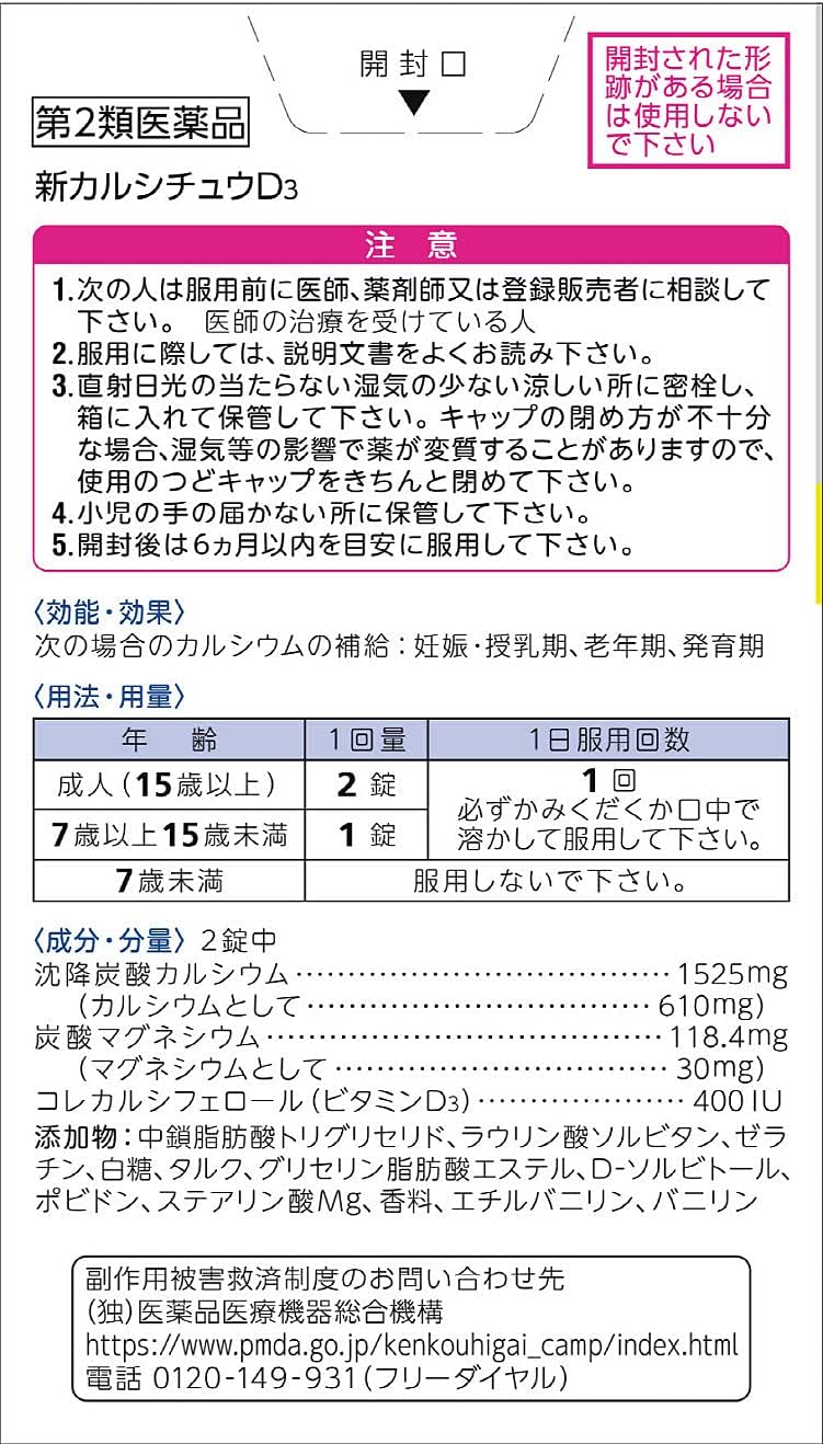 Cholecalciferol (Vitamin D3): 400 IU – tăng cường hấp thu canxi ở ruột, giảm nguy cơ loãng xương và hỗ trợ miễn dịch.