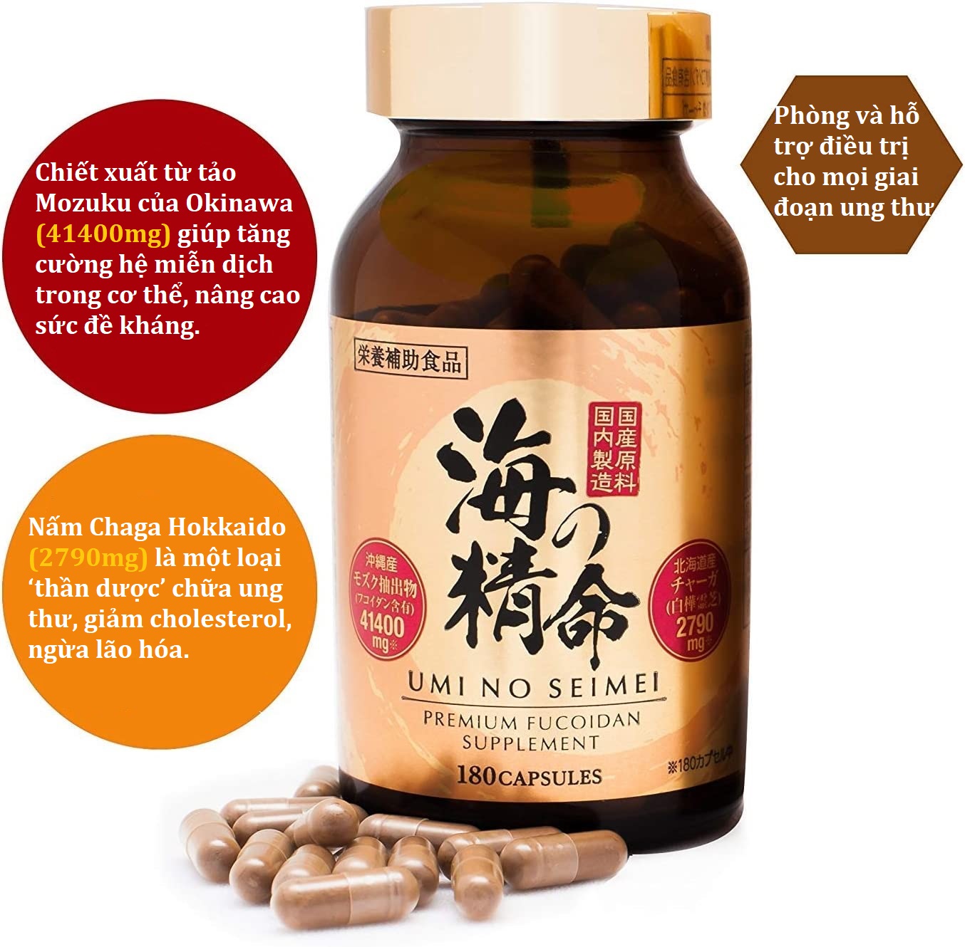 Fucoidan Umi no Seimei đến từ Nhật Bản là sản phẩm hỗ trợ điều trị, ngăn chặn việc phát triển tế bào UNG THƯ - hỗ trợ điều trị TIỂU ĐƯỜNG, cùng công dụng bồi dưỡng cơ thể.