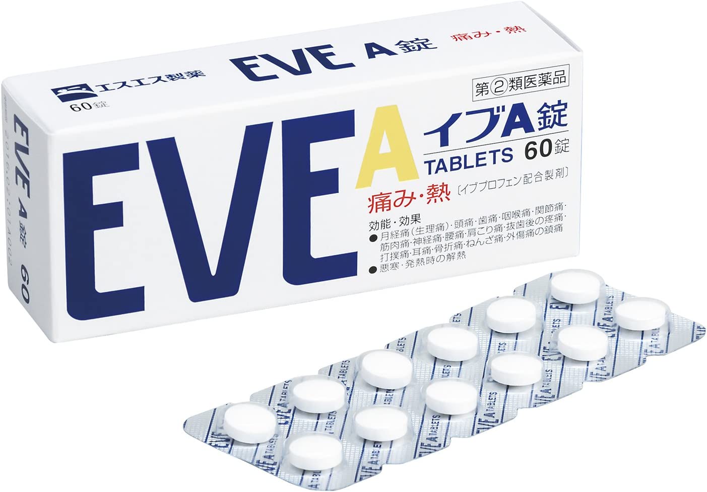 - Eve A với thành phần chống đau và viêm từ nhẹ đến vừa làm giảm các triệu chứng đau bụng kinh, nhức đầu, đau răng, đau họng, đau khớp, đau cơ, đau dây thần kinh, đau thắt lưng, đau cứng vai, đau sau khi nhổ răng, đau vết bầm tím, đau tai, đau gãy xương, đau bong gân, giảm đau do chấn thương...