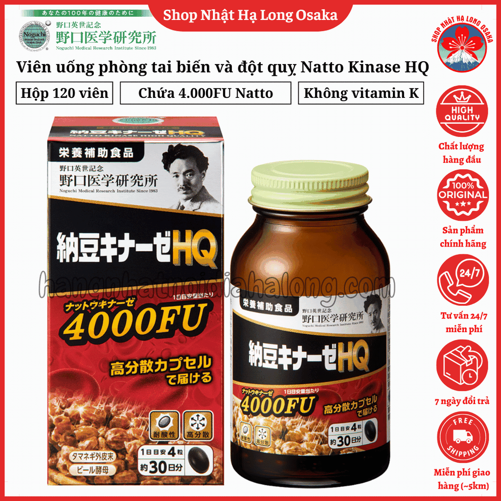 Viên uống Noguchi Natto Kinase HQ 4000FU là phiên bản hàm lượng cao gấp đôi so với dạng thông thường, đặc biệt dành cho những người có nguy cơ hoặc tiền sử tai biến mạch máu não, nhồi máu cơ tim.