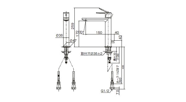 Bản vẽ Vòi chậu rửa mặt TOTO TLCC31ER