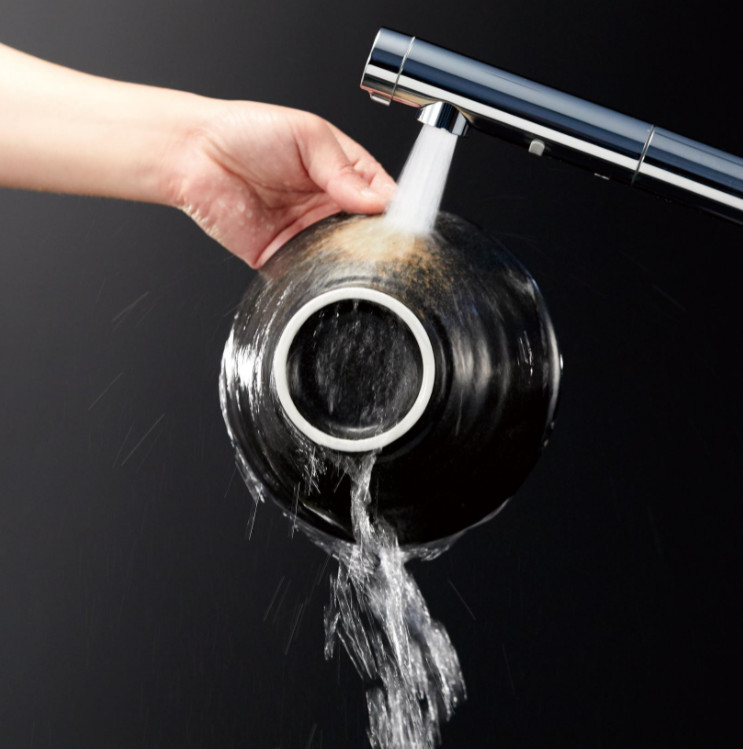 Chế độ nước Eco (nước kèm bọt khí) nước rất mềm, ra mạnh, nhanh nhưng không bị bắn. Thao tác tắt mở vòi rửa bát TOTO nhẹ nhàng, dễ dàng hơn.