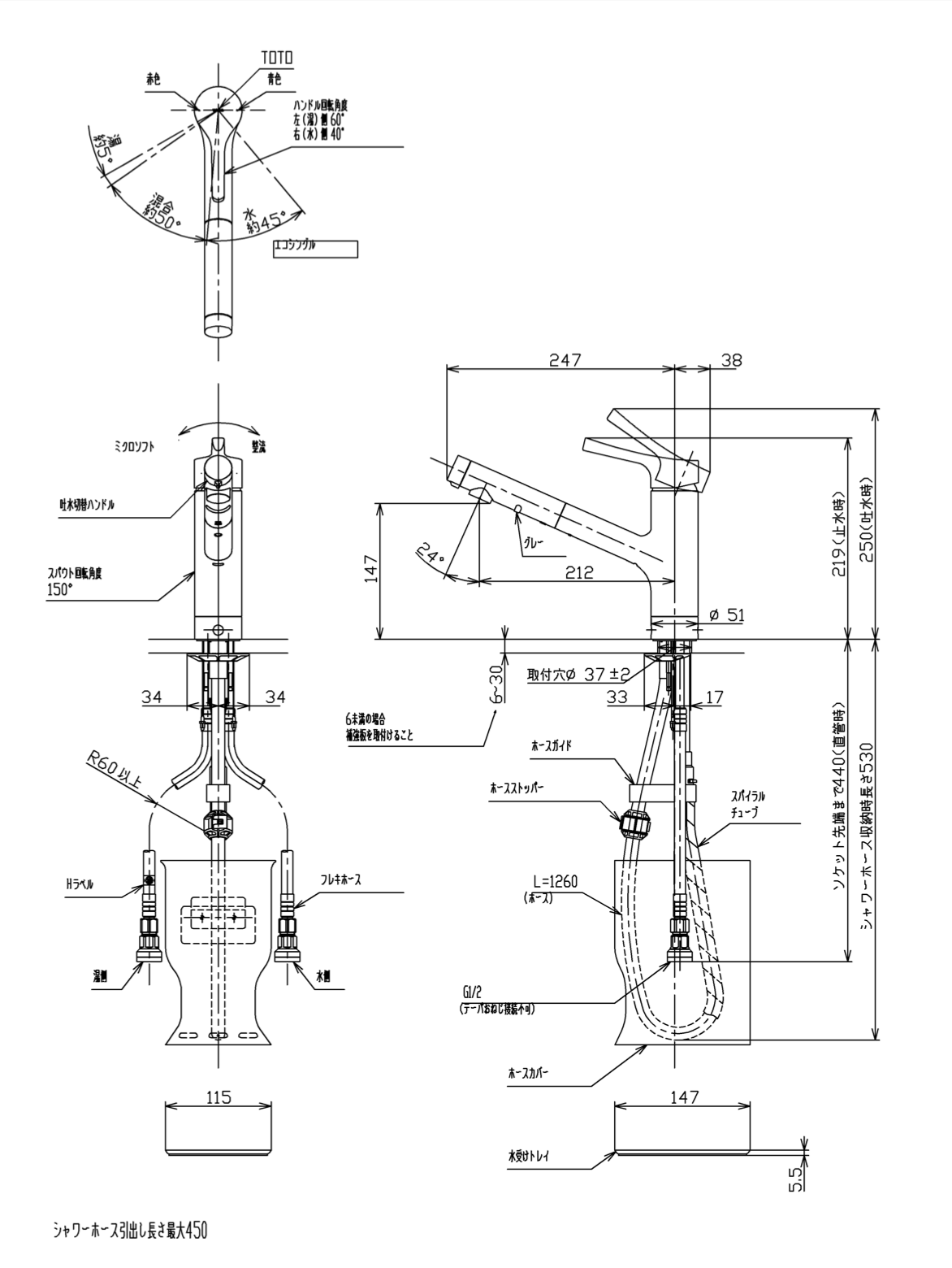 Bản vẽ Vòi rửa bát TOTO TKS05301J