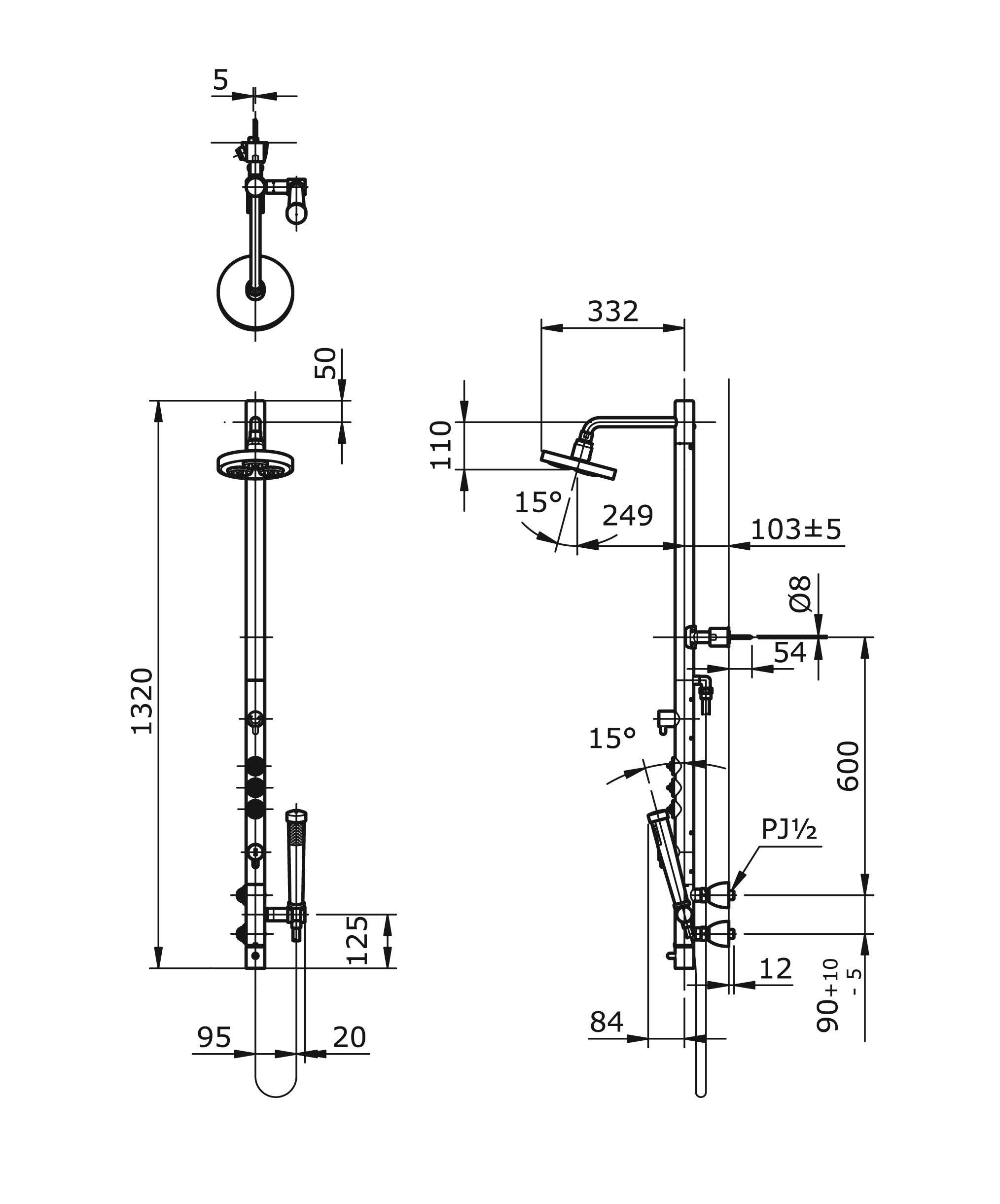 Bản vẽ Vòi sen cây massage TOTO TMC95ECR